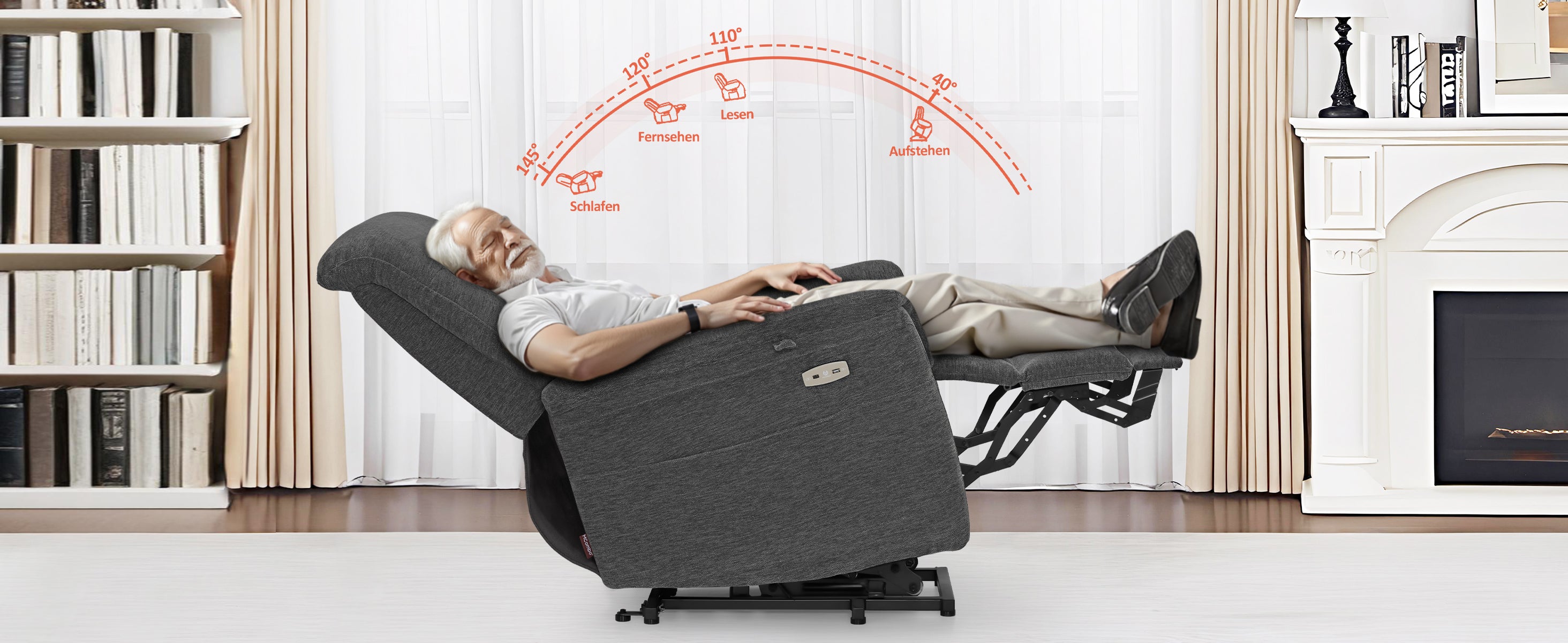 dieser Relaxsessel gehört zu unseren Serien Relaxsessel mit elektrischer Aufstehhilfe; der elektrische Fernsehsessel ist speziell für die Leute, die Schwierigkeiten beim Aufstehen haben; mit einem kräftigen Elektromotor ist der Sessel höhenverstellbar und er kann sich gleichzeitig nach vorne neigen; so hilft es mühelos bei Aufstehen; und umgekehrt können Sie sich langsam und bequem hinsetzen; es ist ideal für Senioren oder die Menschen mit Verletzung im Bein- oder Rückenbereich.