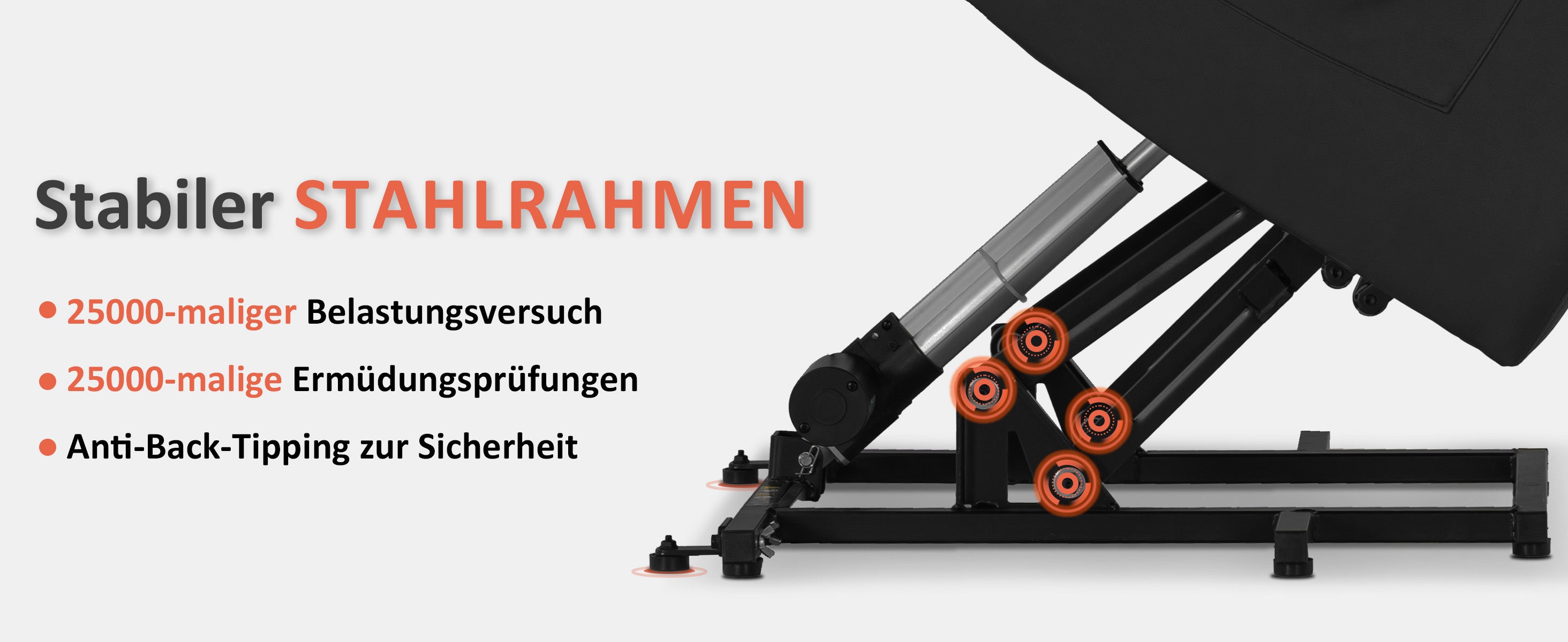 Unterschiedliche Positionswechsel sogar die Kopfstütze können durch 3 Motoren getrennt voneinander elektrisch steuern. Die Rückenlehne, der Kopfstütze, Aufstehhilfe und Liegefunktion sind separat verstellbar. Die Rückenlehne ist stufenlos elektrisch bis zu 165° verstellbar.