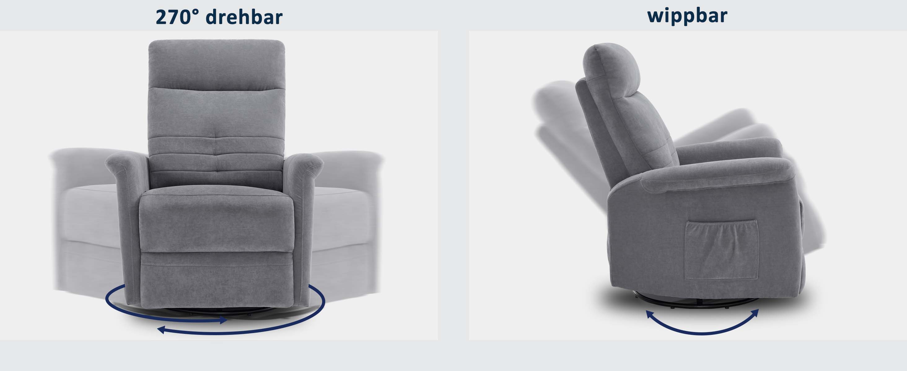270° ROTATABLE & ROCKING --- The 270° rotating and rocking function of the nursing chair offers you more space for breastfeeding, sleeping, etc. The backrest of the recliner chair can be tilted between 107° and 140° based on your body weight. The legrest can be manually folded out by adjusting the iron hand lever.