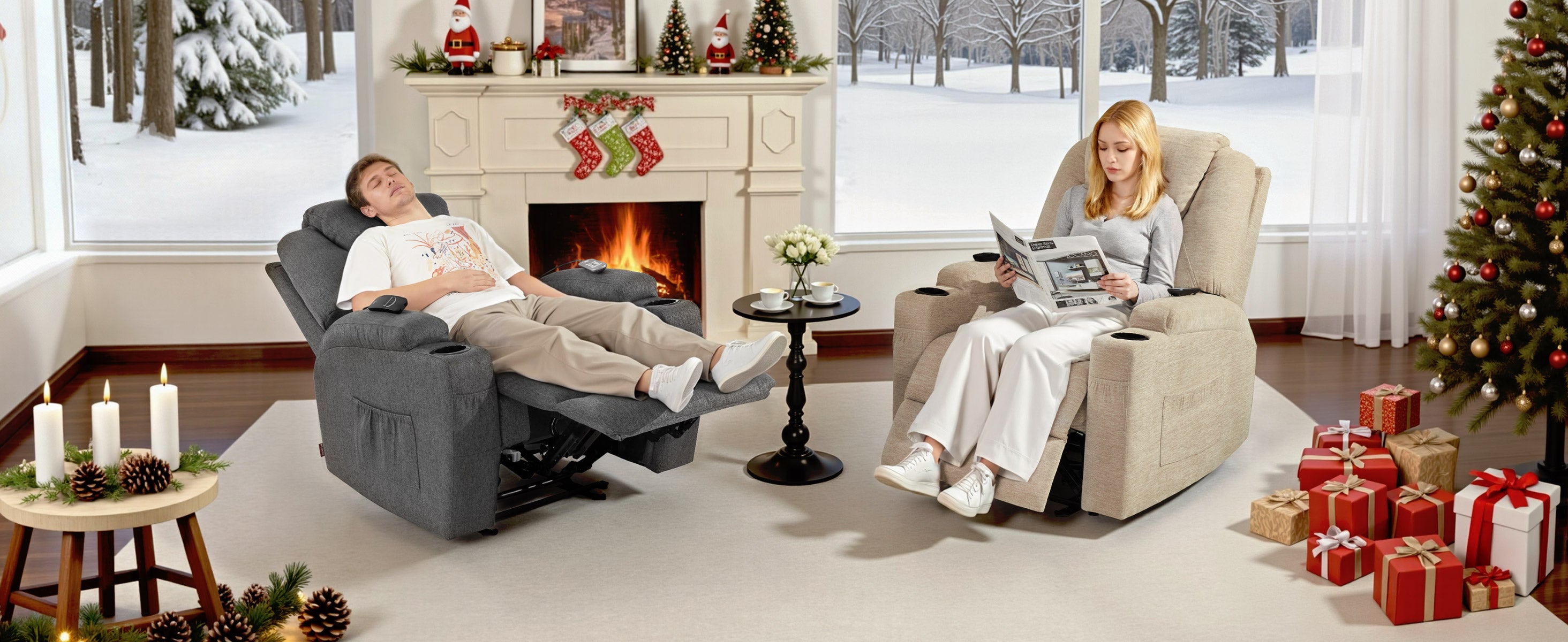 Electrically adjustable reclining function: Thanks to the adjustable backrest and footrest, you can choose between different levels and lie down comfortably; with the remote control, your electric TV chair can be easily adjusted from a sitting position to a lying position