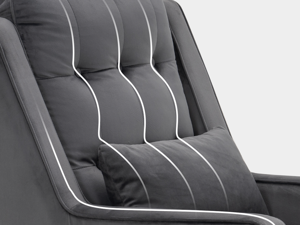 ERGNOMIC DESIGN --- Comfortable armchair is ideal for long periods of sitting. Removable wide spring core seat cushion for a perfect rest area. 115° inclined high backrest with additional lumbar cushion reduces pressure on the lumbar spine and armrests that are not too high allow the arms to rest comfortably.