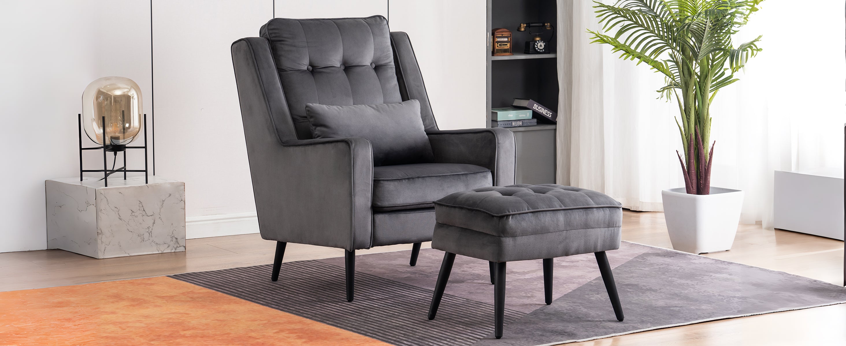 STOOL INCLUDED --- The thickened padded footrest can be placed freely in front of the lounge chair so that the knees are sufficiently supported and do not sag. You can also use it as a separate home accessory if desired. Elegant design fits into any environment.