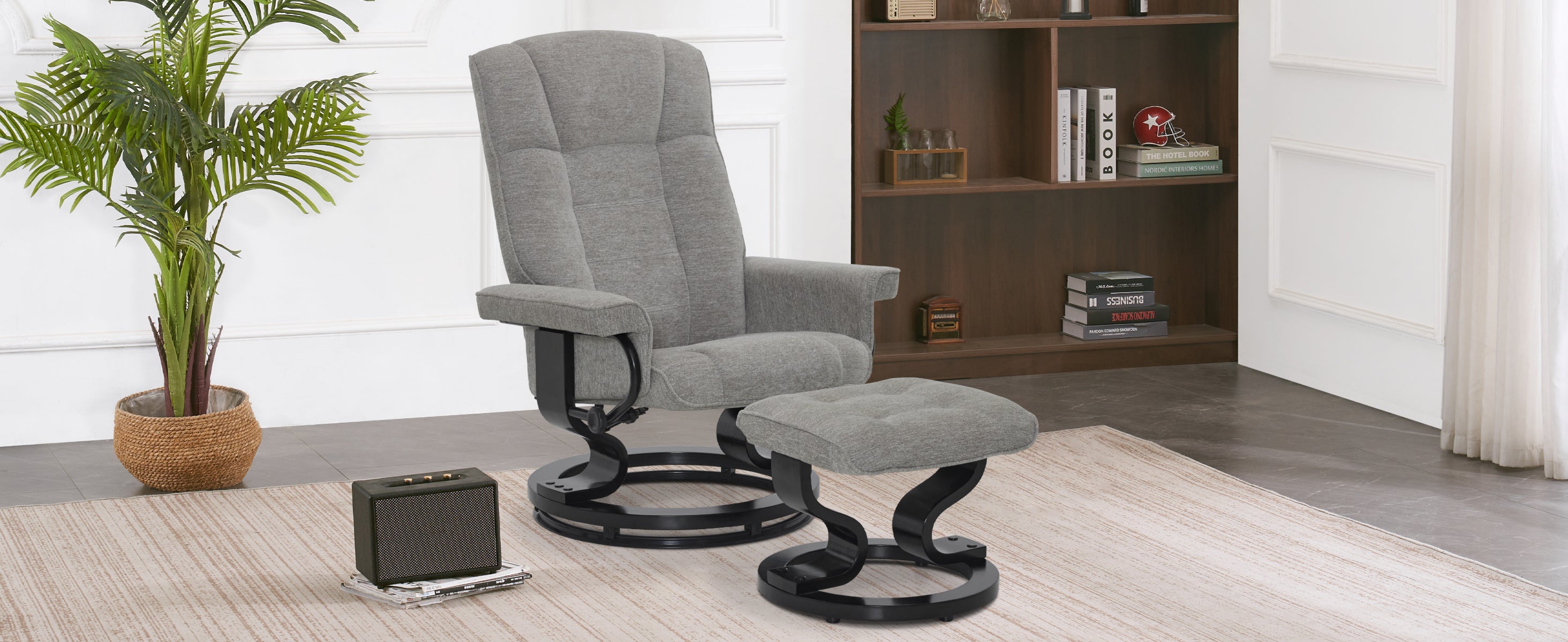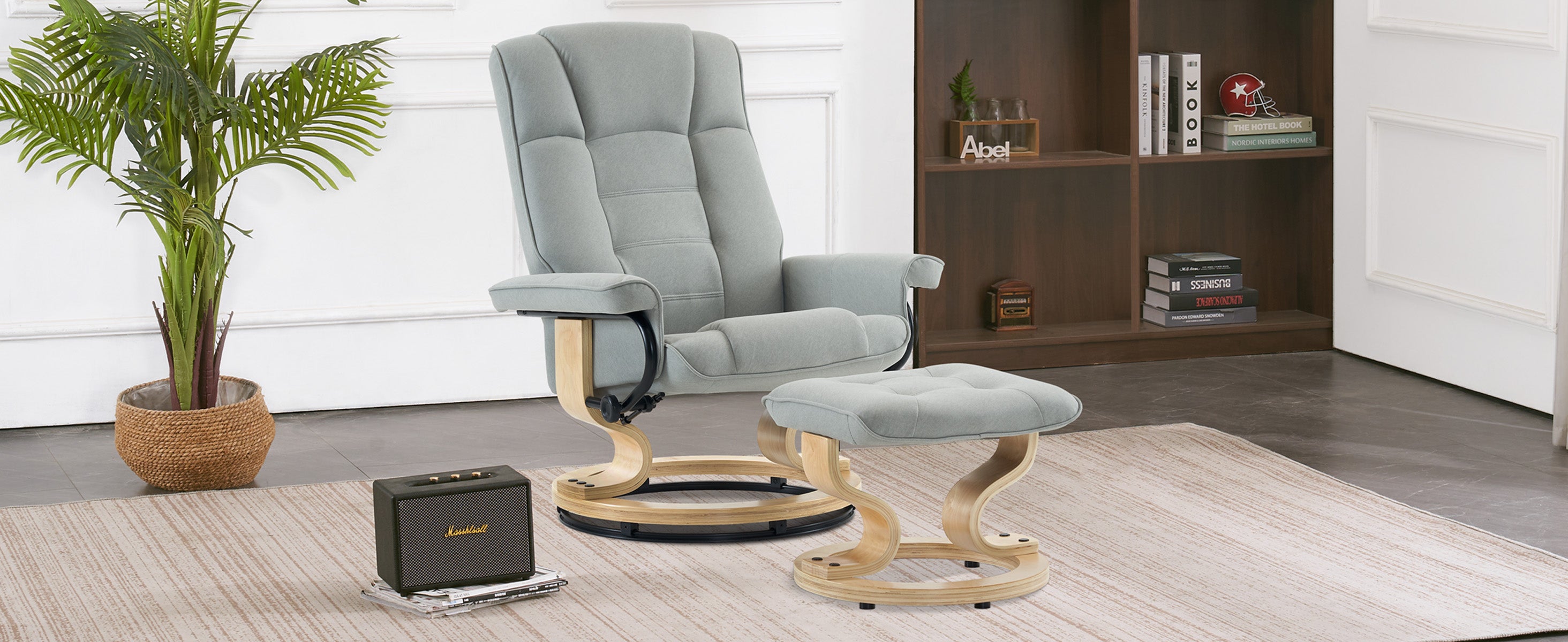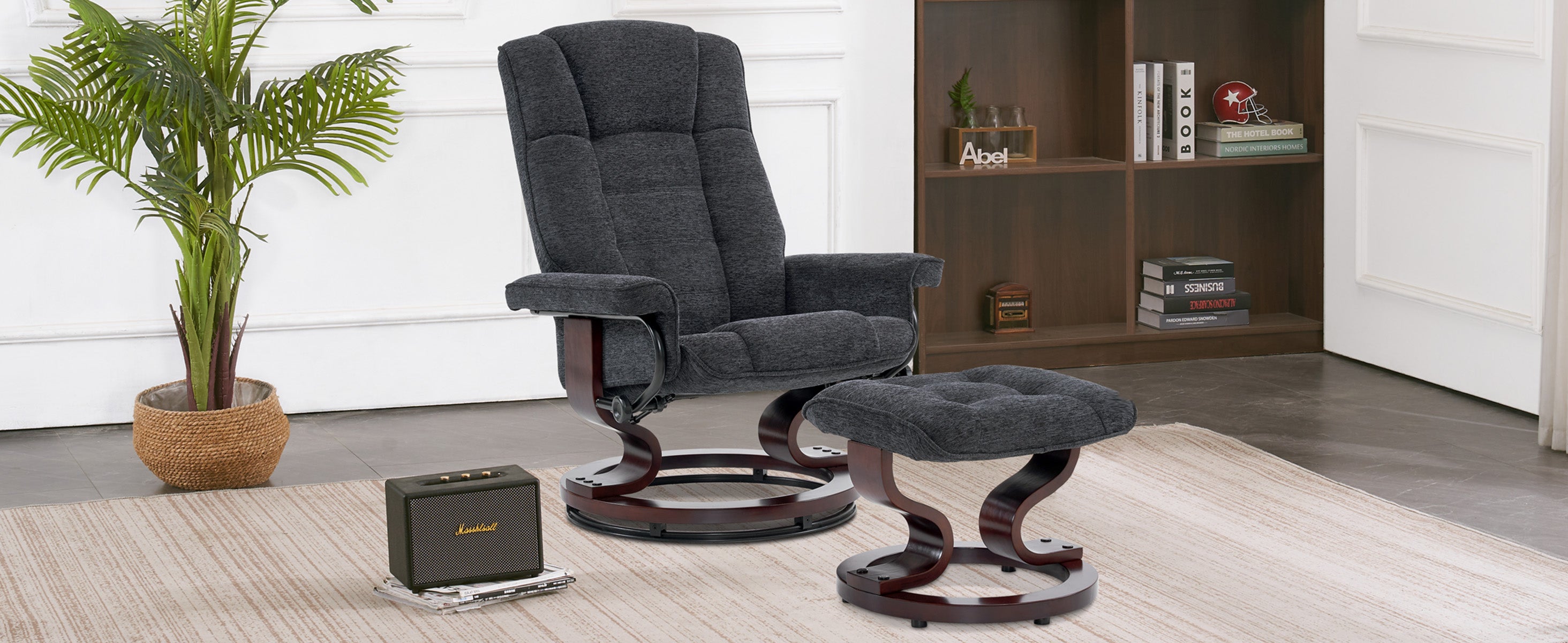 Swivel Base --- Recliner chairs with a 360° swivel design bring you more comfort without moving your body. Constructed of solid wood and steel, they can support a weight of up to 120 kg and ensure excellent stability.