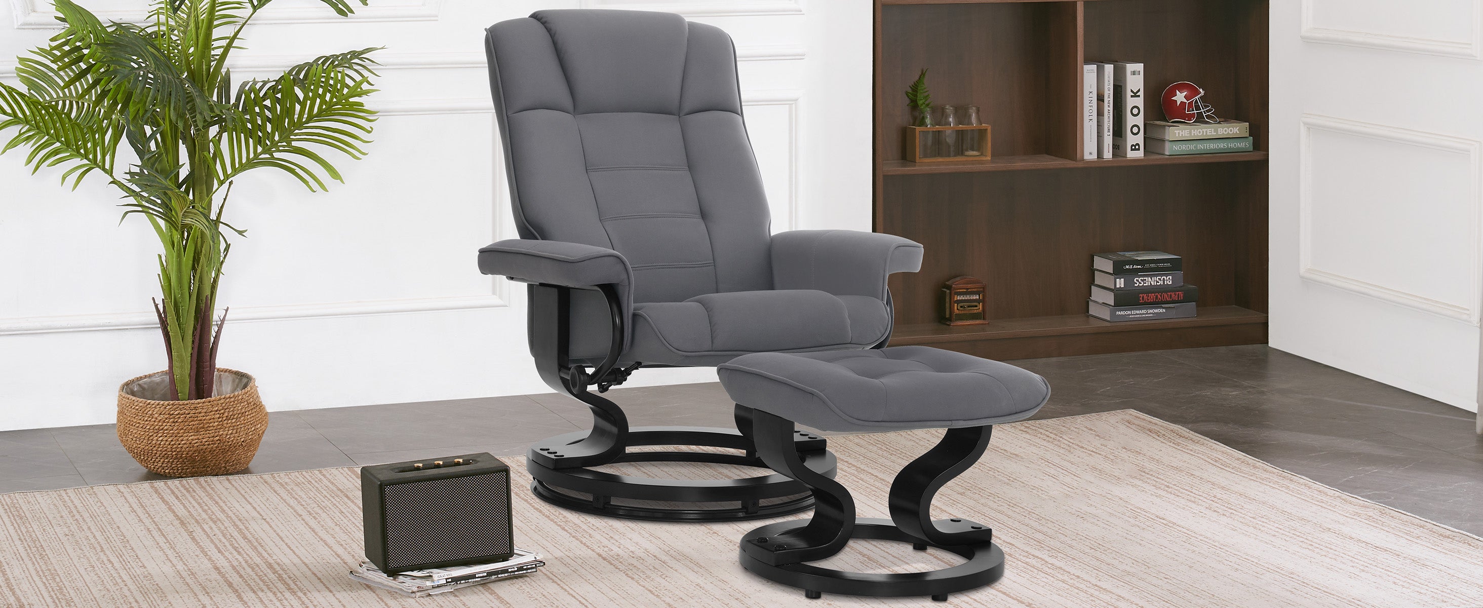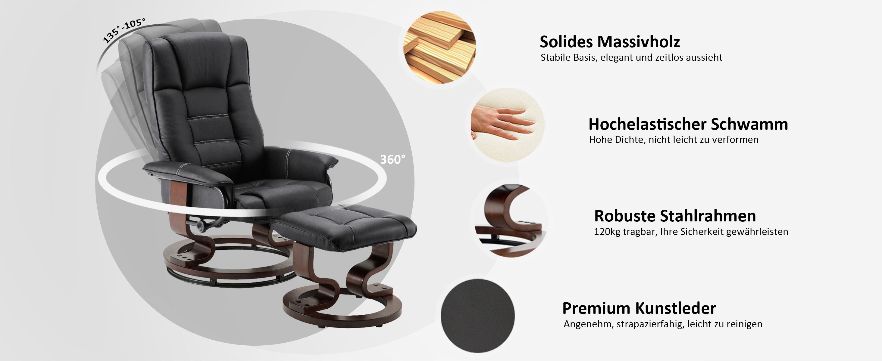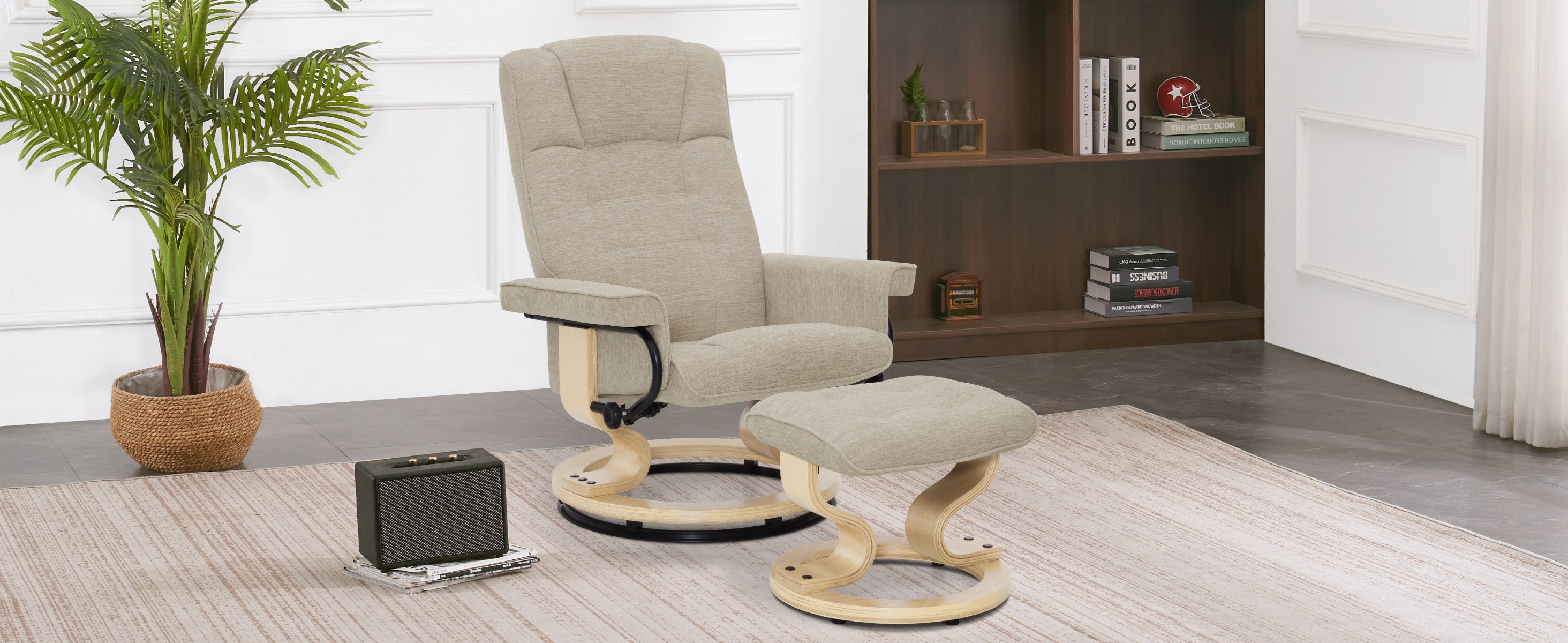 Swivel Base --- Recliner chairs with a 360° swivel design bring you more comfort without moving your body. Constructed of solid wood and steel, they can support a weight of up to 120 kg and ensure excellent stability.