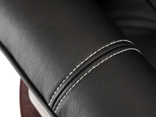 It's a comfortable and sturdy chair that allows for full body relaxation. The backrest is also mechanically infinitely adjustable up to 135°. The position of the backrest can be locked using a rotary knob underneath. The backrest, armrests, and seat are padded with extra-thick foam to ensure a comfortable sitting experience. Highly resilient foam ensures years of comfort and allows the chair to be both durable and beautiful. This recliner chair is your personal haven of peace in this hectic world.